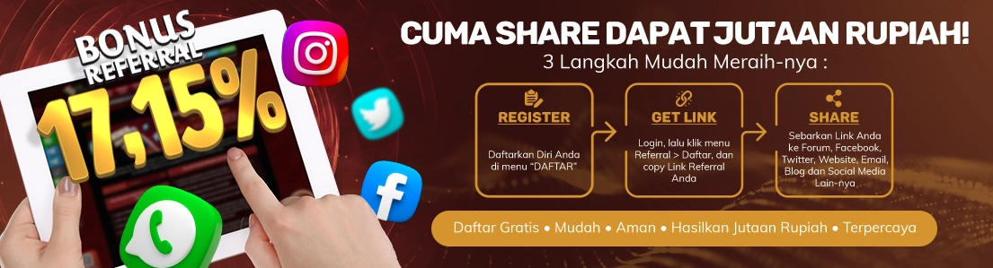 Referral system tidak dipungut biaya apapun. Hanya dengan modal online saja setelah itu Anda hanya tinggal mengecek keuntungan Anda yang dapat dilihat secara online kapanpun dan dimanapun. Register sekarang juga dan referensikan Link Referral Anda